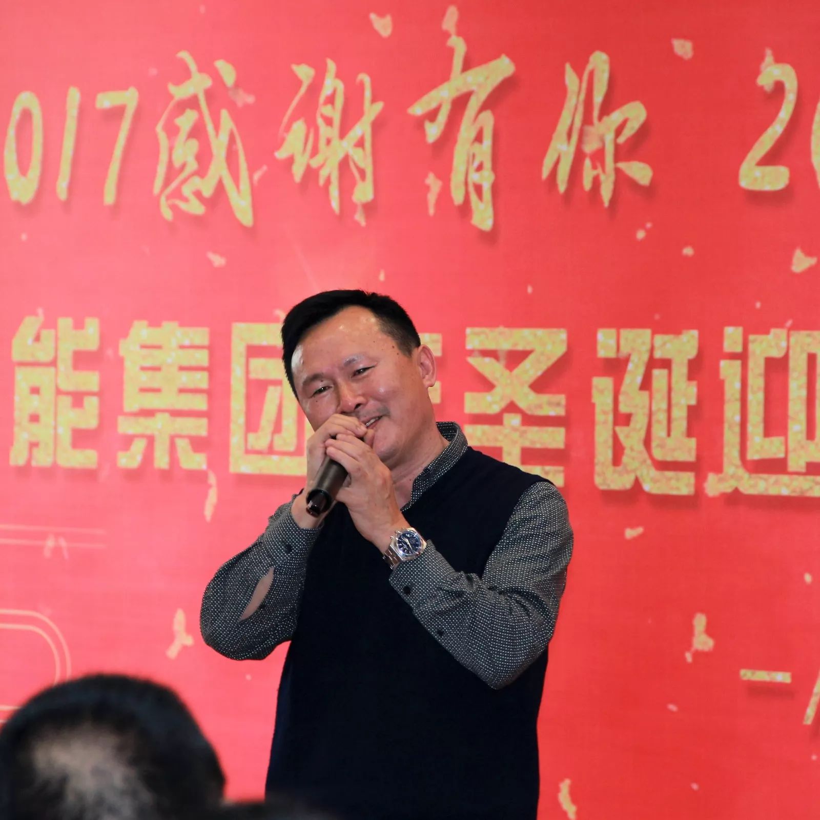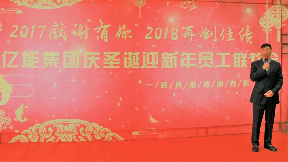 ▲亿能集团董事长周桂根致辞,为全体员工送上新年祝福 拉开亿能集团庆圣诞迎新年员工联欢会的序幕。